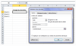 - sélectionner ensuite Liste dans les propositions puis Autoriser avant de saisir les données en les séparant d’un point virgule (;)